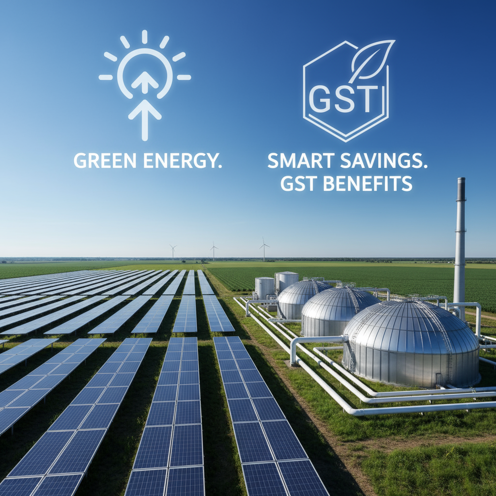 India’s renewable energy sector is booming with the latest GST reforms, effective September 22, 2025. The GST Council has slashed rates from 12% to 5% on key components like biogas plants, solar panels, and EPC supplies, boosting affordability and adoption. This aligns with the 2025 Union Budget’s green push, potentially saving ₹1.5 lakh crore by 2030. For businesses exploring biogas or solar EPC, these changes mean lower costs and faster ROI—perfect for waste-to-energy and clean power projects.